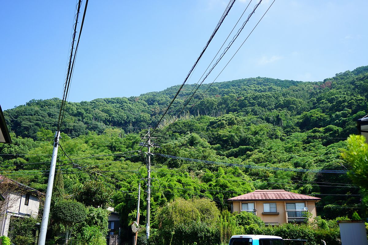 おはようございます。写真は実家の裏山、そこに降った雨が一気に流れてくるので、このあたりは先日の豪雨で冠水しました。 空は抜けるような青空、今日も熊本は暑いです。電線が邪魔ですみません。