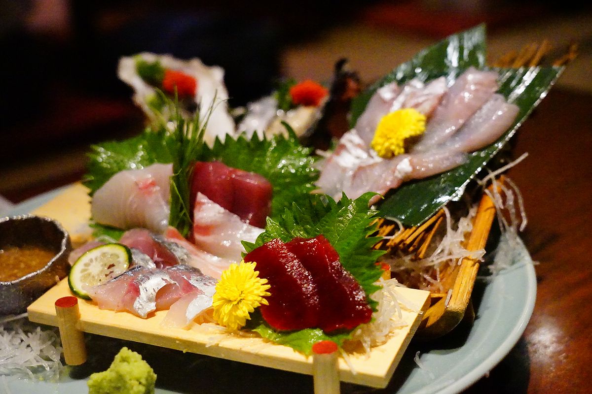 マダコ、ブリ、真鯛、カツオのタタキ、イサキ