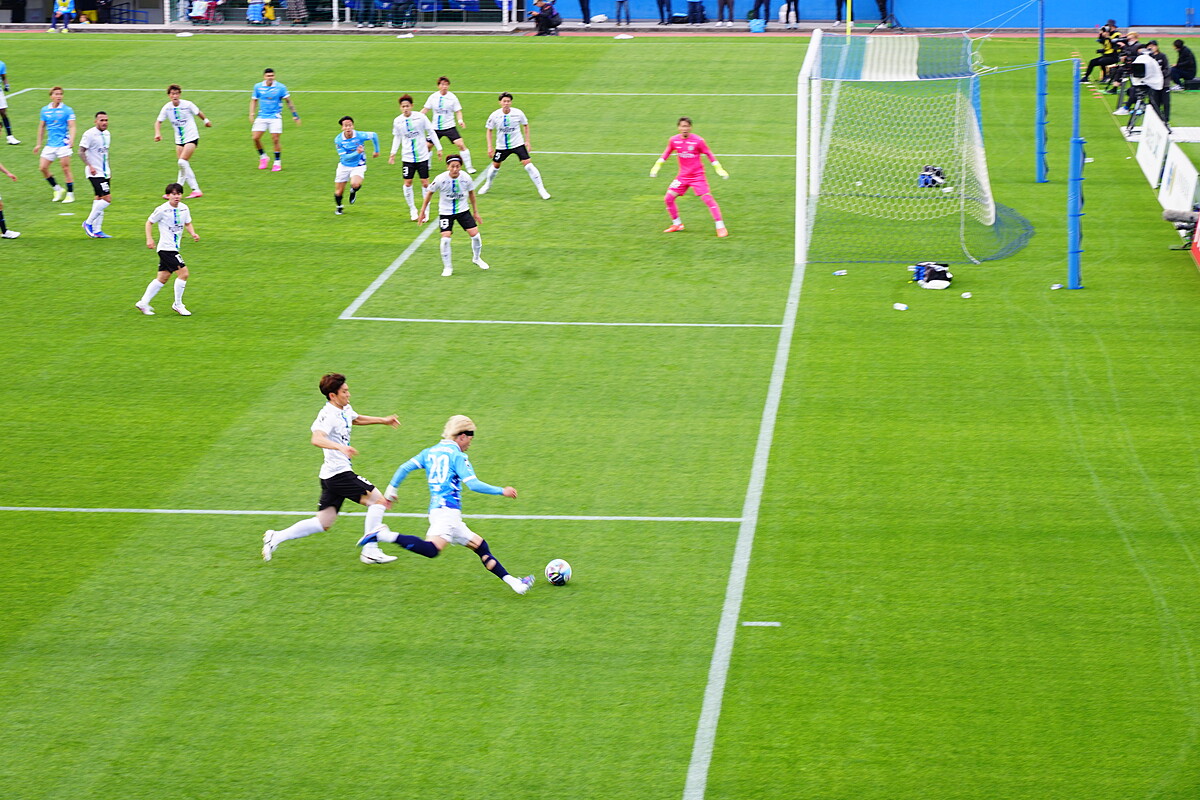 「こりゃ完敗だなぁ」と思えた終了5分前、横浜FCが1点を返して1-3に。0点じゃなくて良かったです。