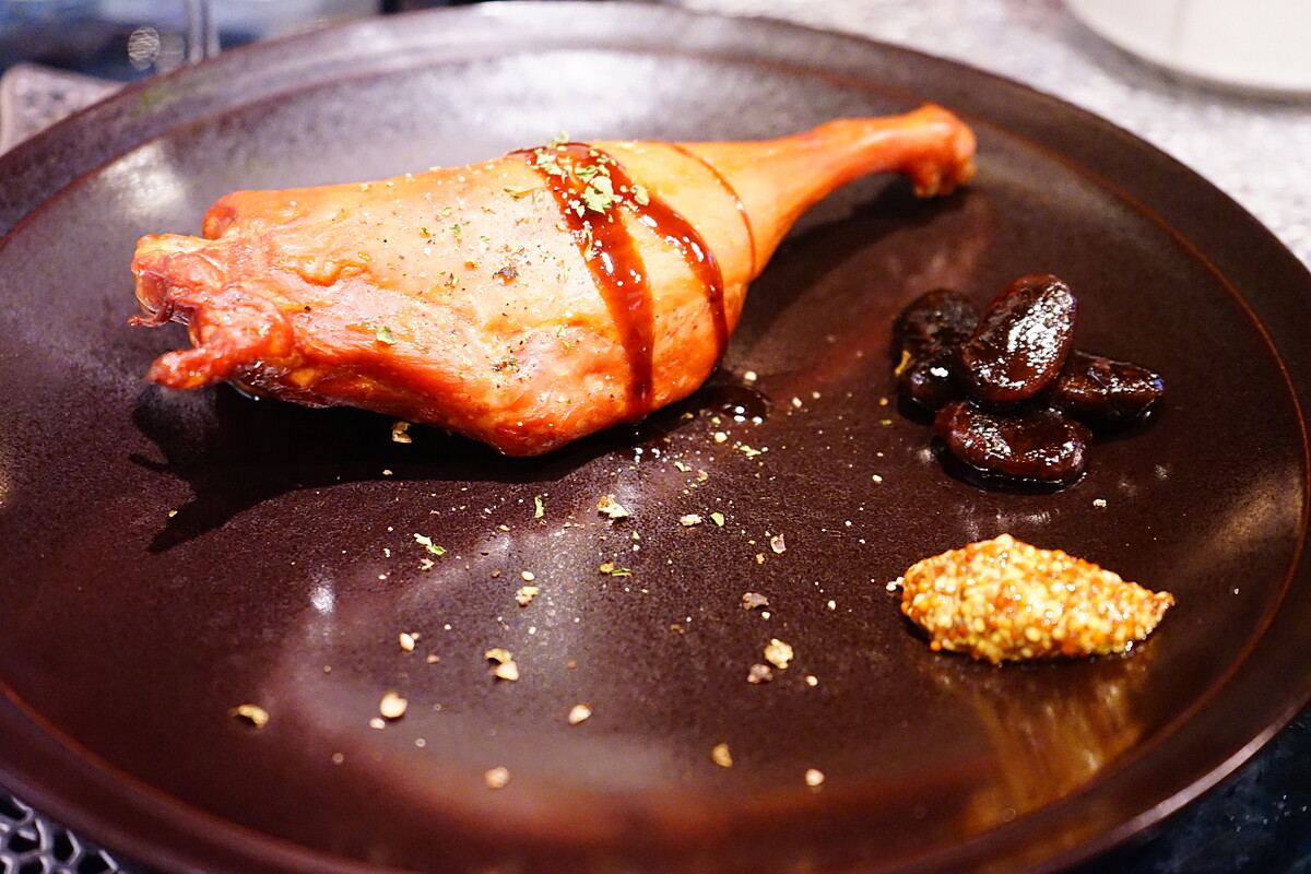 ・鴨スモーク 骨付きモモ肉(コンフィ風)とエスプレッソ煮豆