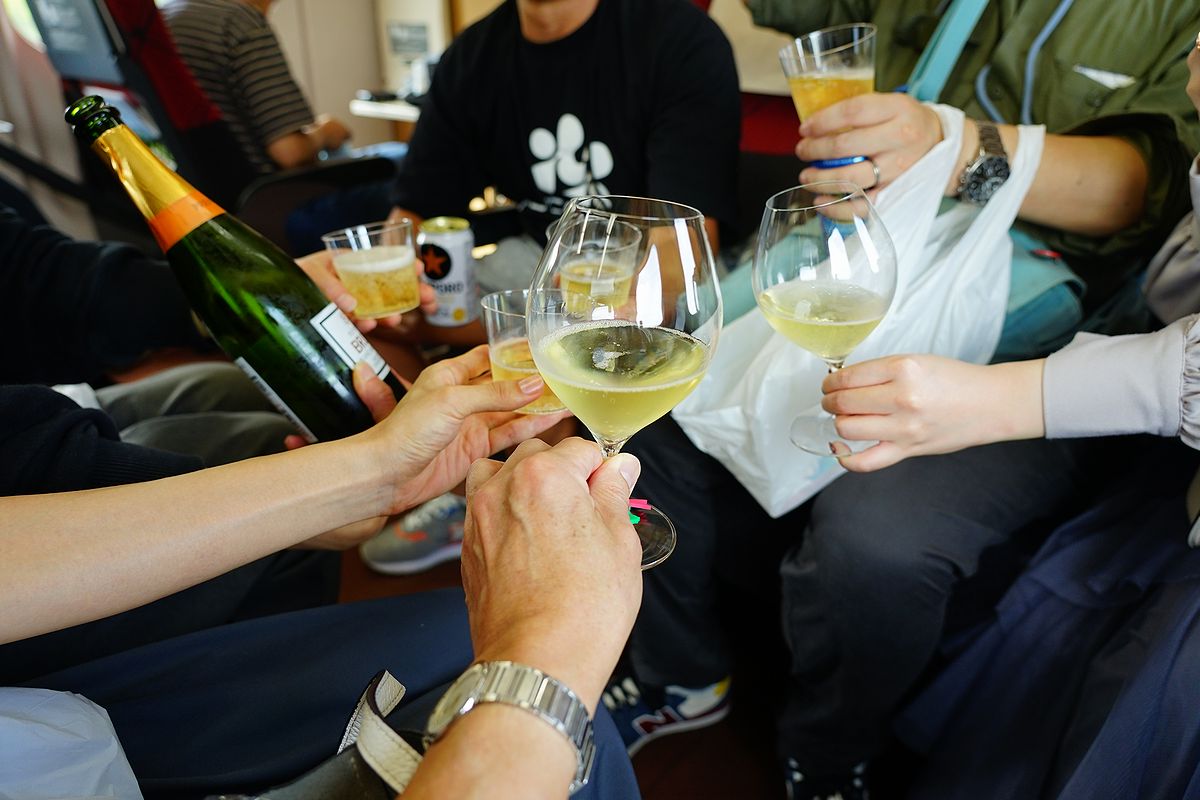 とにかく新幹線に乗って遠くへ行くだけでも楽しいのに、その上ワイン三昧。楽しくないはずがありません。
