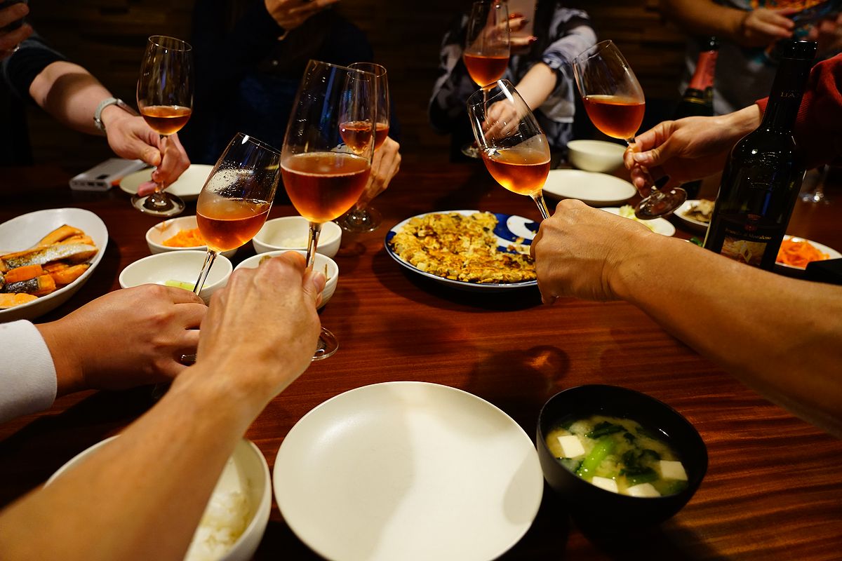 ワインが開いたので改めて乾杯。ちなみにグラスを持参しているのは師範とMayumiさんだけで、
