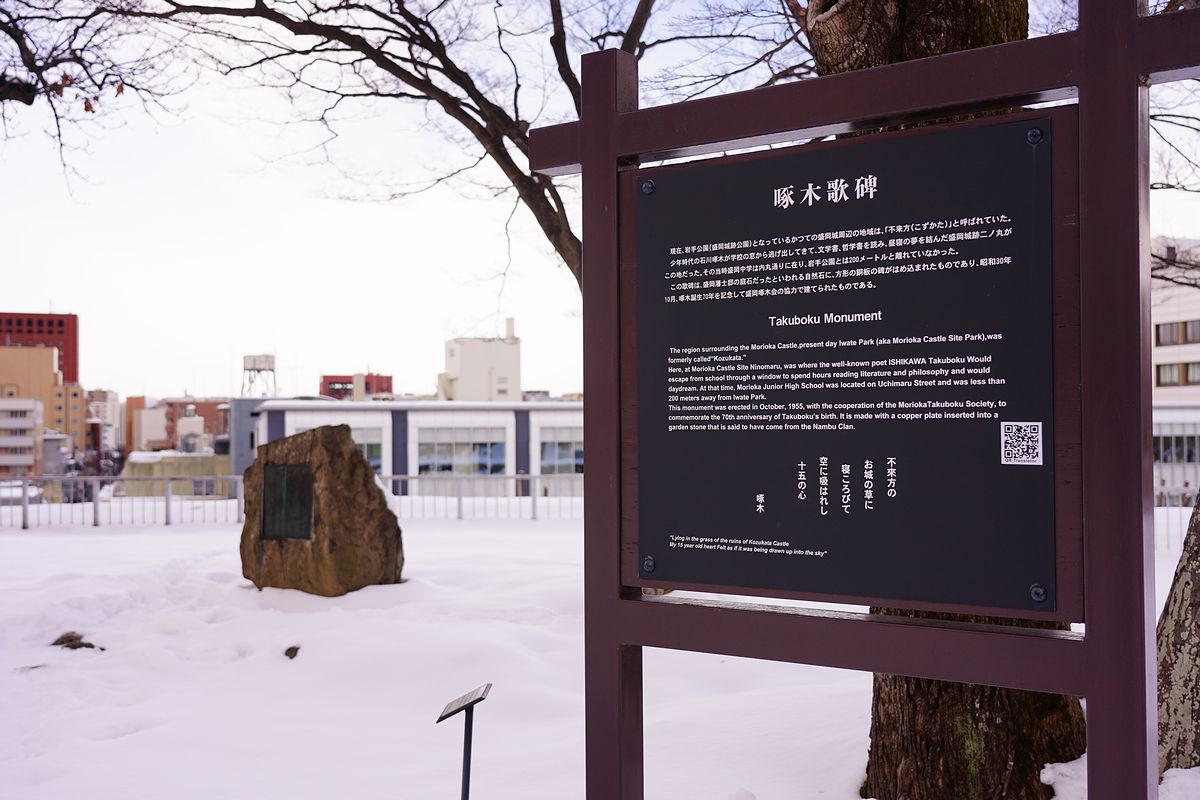 盛岡城、天守閣はありません。昔あった南部利祥中尉銅像も太平洋戦争の金属供出で無くなって、台座のみになっています。 あるのは石川啄木の歌碑くらいでした。盛岡、石川啄木と宮沢賢治推しなんですね。 歴史や文学にはあまり触れてこない人生だったので、へぇ~って感じでした。