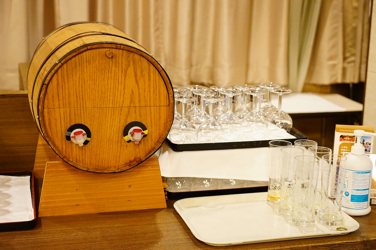 ビールの次はワインです。カウンターには「秋田犬ワイン」のボトルが置いてありました。 秋田の地ワインらしいですが、ペットも泊まれる宿らしいチョイスではあります。 飲み放題のワイン樽の中身もそれなのか聞いたところ、 『いいえ、オーストラリア産のワインです』とのことでした。ギャフン。