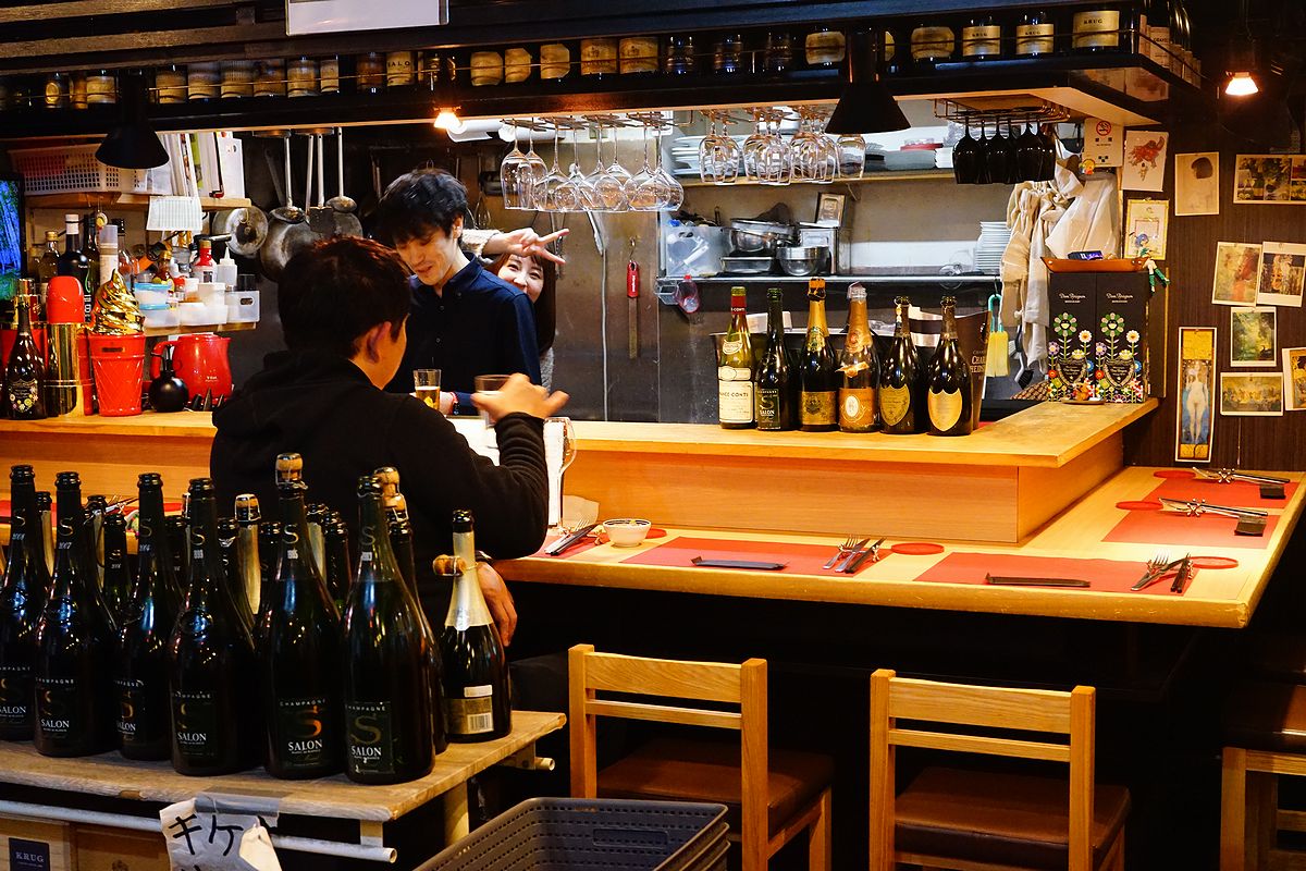 我々が通されたのは、2階のダイニングにある丸テーブル席。4人で使うには十分な広さがあります。 TZKさんの予約だとグラスをいっぱい使うことがわかっているので、お店側に配慮して頂いているような気がします。