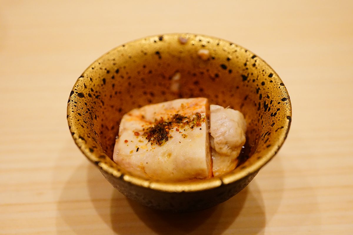 低温調理(火入れは55℃で3時間とのこと)された胸肉、しっとりしていてとても美味しい料理でした。