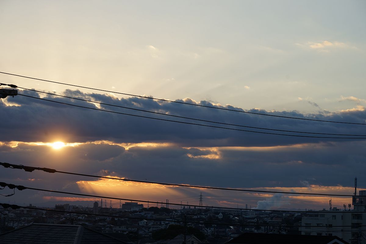 道場の東の空は、あいにく千葉上空あたりに雲がかかっていましたが、