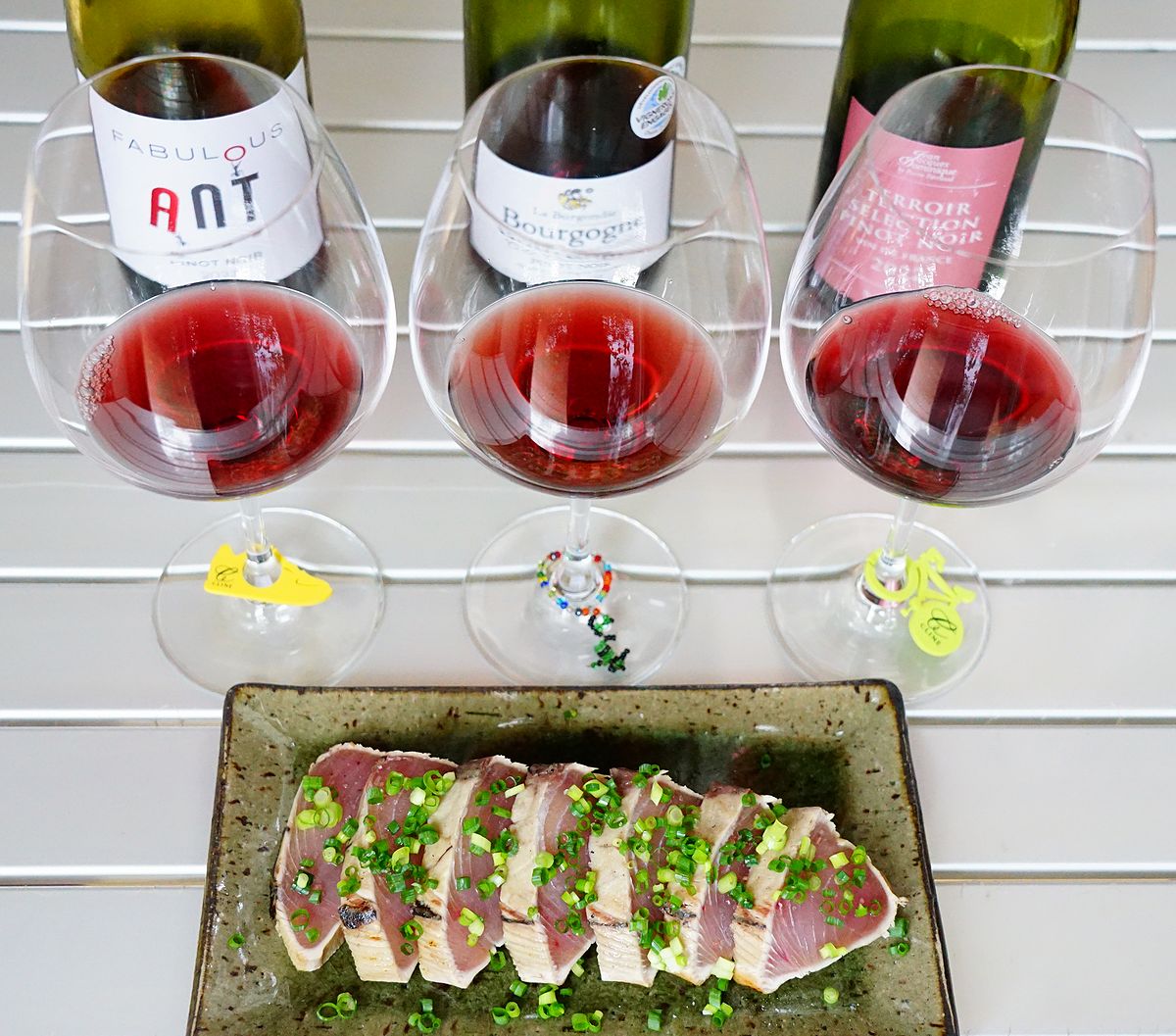色や香りは、黒ブドウ主体のピノ・ノワールそのもので美味しいんだけど、味わいにちょっと違和感があるんだよね~。